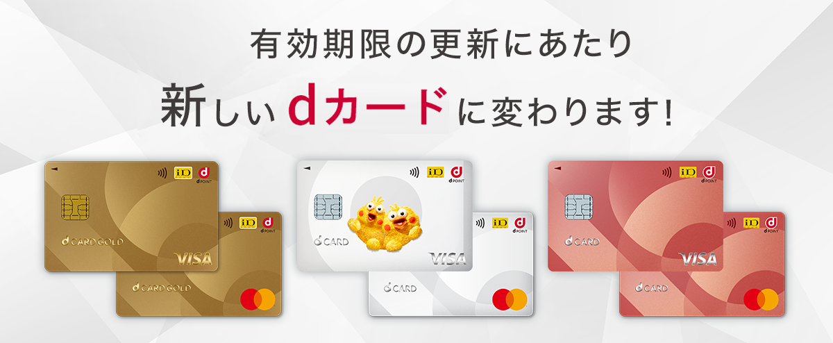 - お手持ちのカード(旧カード)の登録情報は、変更のタイミングなどによって新しいdカードに引き継がれない場合がございます。新しいdカードが届いたら、登録情報をご確認ください。
